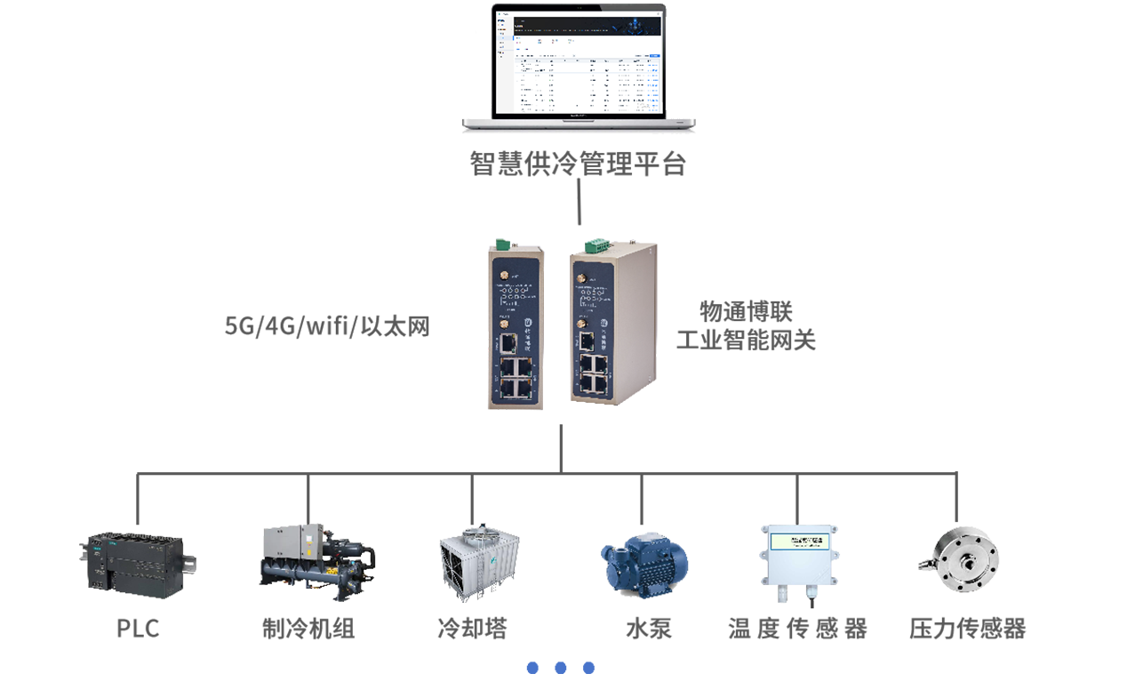 借助欧付宝的工业智能网关,实时采集供冷系统中制冷机组、冷却塔、水泵等设备的运行数据,包括温度、压力、流量、功率等。同时,采集室内外环境温度、湿度以及不同区域的冷量需求数据。将采集到的数据传输至智慧供冷管理平台,平台顺利获得数据分析和算法模型,预测不同时间段和区域的冷量需求,优化设备运行参数,实现设备的智能控制。当设备出现异常或可能发生故障时,及时发出预警并给予故障诊断和处理建议。此外,平台还具备能耗成本核算功能,为用户给予详细的能耗报告和成本分析,以便进行成本控制和节能决策。