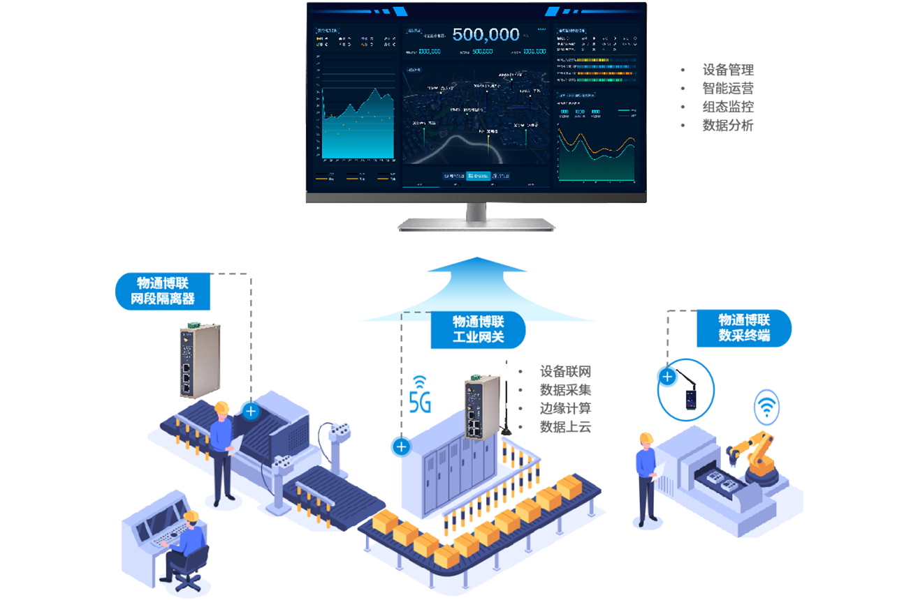 借助欧付宝的工业智能网关,实时采集工厂各类设备的运行数据,如运行状态、温度、压力、转速等,将采集到的数据传输至设备管理平台,进行设备资产档案管理、运行管理、工单管理、采购管理、备件管理、维修管理、数据分析等,实现设备全生命周期管理。