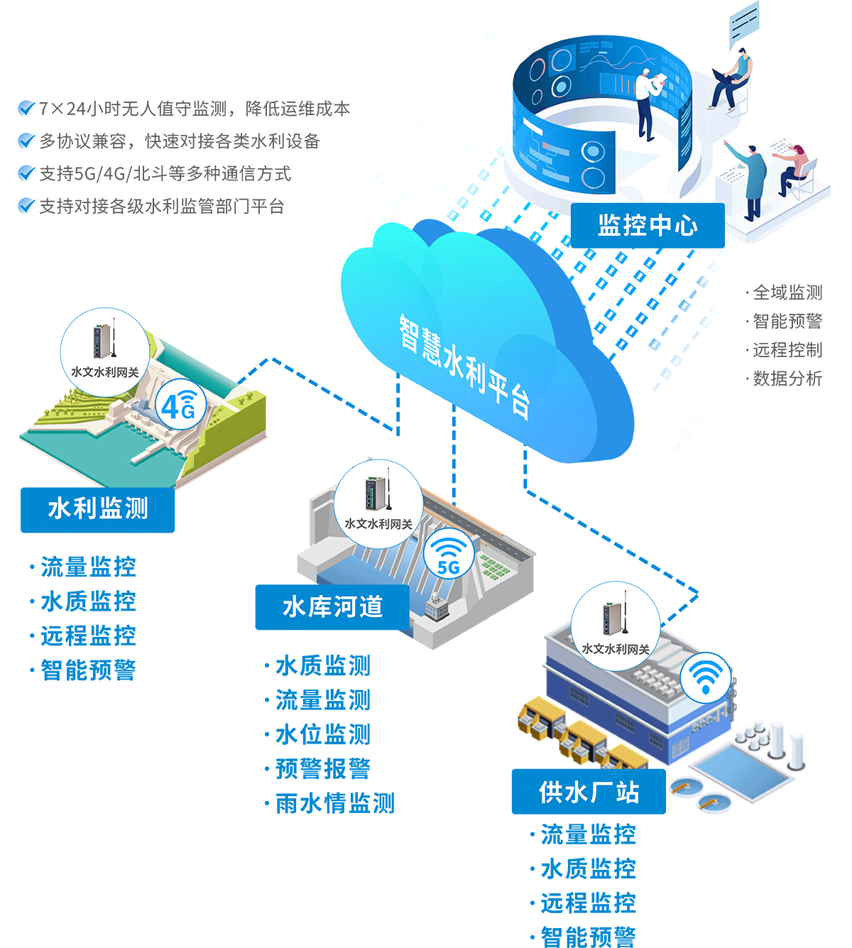 针对智慧水利不同应用场景,给予定制化的解决方案