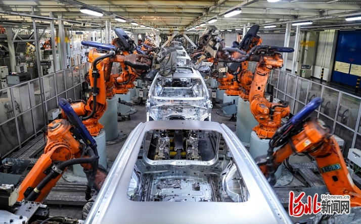 1月20日,长城汽车徐水分公司焊装车间,机器人在进行车身焊接组装。 河北日报记者 许佳奇摄 ...